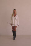 *RESTOCKING* A super cosy style, the Alara Shorts are made from a soft lightweight knit in white. They are a high waisted style featuring an elasticated waist and contrast black blanket stitch detail at hem. Get the set with the Alara Top! Designed exclusively by Sabo.