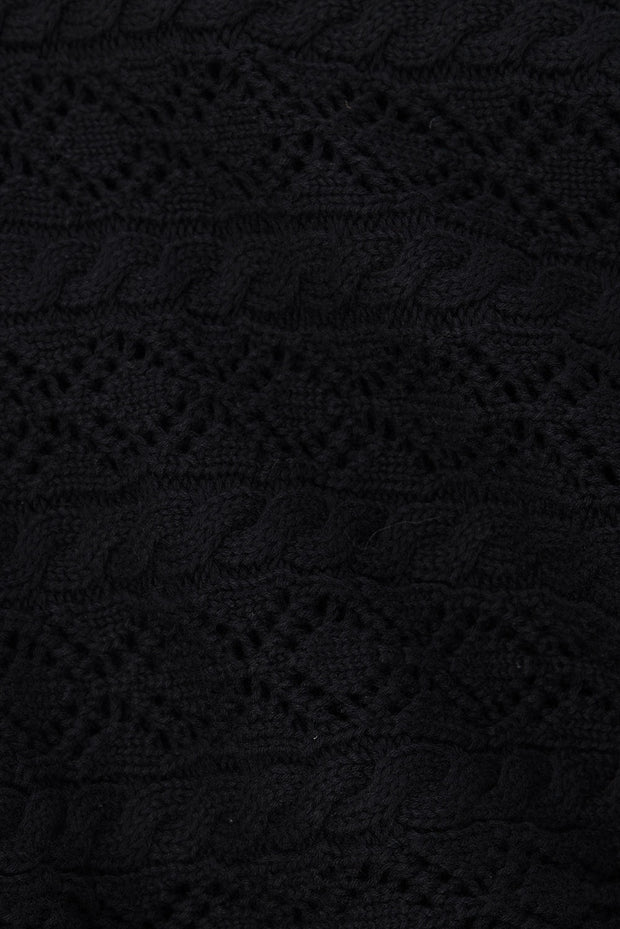 A comfy, chic trans seasonal set, the Cierra Top is made from a natural cotton crochet knit in black. It is an unlined semi sheer style featuring a strapless neckline, full length off shoulder sleeves and a boxy fit. Get the set and style with the Cierra Pants. Designed exclusively by Sabo.