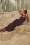 Wear it as a set or pair it back with a basic cropped tank! The Ellarose Skirt is made from a light knit fabric in a chocolate brown hue. It features a high elasticated waist, cable knit details at sides and an a-line maxi skirt. Get the look with the Ellarose Top and Vivian Sandals! Designed exclusively by Sabo.