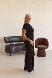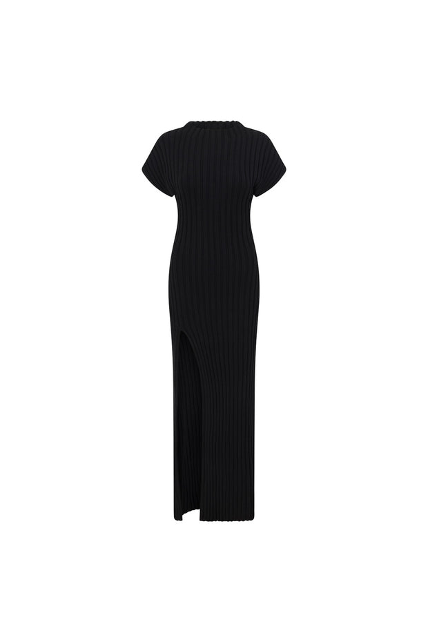A less-is-more design in a contouring rib fabric! The Gemini Dress features raw edging, cap style sleeve, body hugging fit and maxi skirt with split at thigh. Keep it casual with chunky slides or dress it up with heels. Designed exclusively by Sabo.