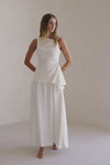 Step into your next event in style with the Hailey Top, made from a matte silky fabric in white. It features an asymmetric neckline with single thin strap, low scooped back, gathered panel at side waist and drape detail at side hem. Get the set with the Hailey Skirt! Designed exclusively by Sabo.