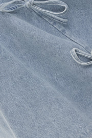 Our cult favourite Kapri Dress now in denim! It is made from a structured cotton denim fabric in blue and features a high neckline, flattering a-line silhouette, rouleau bow details and a mini skirt and mini split at side. Dress it up with the Tamia Heels! Designed exclusively by Sabo.