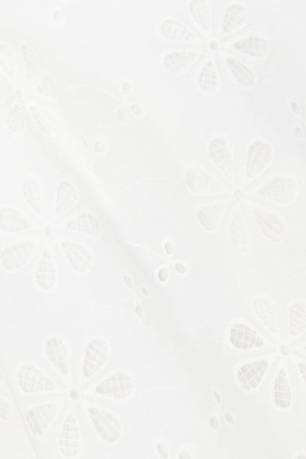 The summer inspired Laora Dress is made from a high quality cotton broderie fabric in white. It features a gathered off shoulder neckline with frill detail, twin pockets, scooped back neckline with thick tie closure and a gathered babydoll mini skirt. Dress it up with heels. Designed exclusively by Sabo.