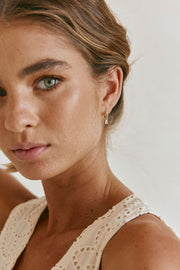 The vintage inspired 18K Millie Huggie Earrings are 18K Gold Plated and feature a gem drop detail.