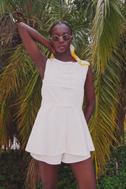 Pair it with the Muse Top and mules for the a super cute dinner outfit! The Muse Shorts are made from a natural cotton fabric in white and feature a thin elastic waist with drawstring and high-low hems. Designed exclusively by Sabo.