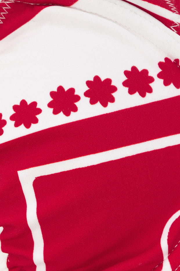 Inspired by European summers, the Nisi Balconette Top is made from a high quality stretchy swim fabric with our exclusive Red Voyage print. It features underwire, draw adjustable straps through neckline and clasp closure at back. Style your look with the Nisi Tie Bottom or Nusa Scrunch Bottom and matching Par La Mer Top! Designed exclusively by Sabo.