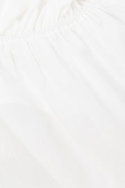 A flattering design and super cute styling piece! The Octavia Top is made from a structured white fabric and features thin rouleau straps, asymmetric elasticated panels across neckline and bust and flouncy hem. Get the look with the Octavia Shorts. Designed exclusively by Sabo.