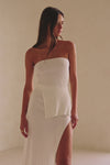 Dress it up with heels for the perfect date night look! The Saria Skirt is made from a textured mini pleated fabric in white and features a high elasticated waist, ankle grazing maxi skirt and super high split detail. Get the set with the Saria Top! Designed exclusively by Sabo.