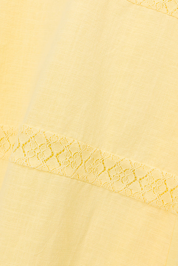 *BACK IN STOCK* Wear it to an event or a long lunch with the girls! The Vida Dress is made from a high quality natural cotton fabric in a yellow hue. It features an scooped open back with bra strap clasp closure, thin rouleau straps, straight neckline, maxi skirt and lace panels throughout. Dress it up with the Mariana Heels! Designed exclusively by Sabo.
